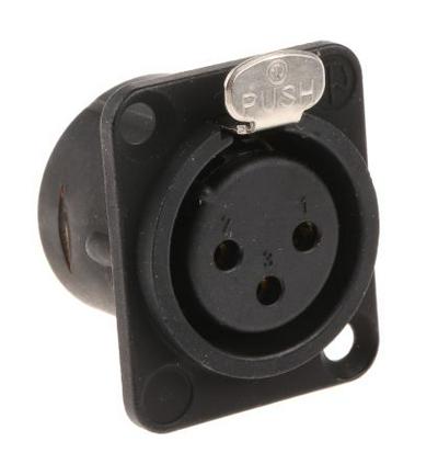 SOCKET XLR PANEL 3POLE; No. of Contacts:3Contacts; Gender:Socket; Connector Mounting:Panel Mount; Contact Plating:Gold Plated Contacts; Connector Body Material:Metal Body; Product Range:DL Series; SVHC:No SVHC (27-Jun-2018); Connector Colour:Black; Contact Resistance:5mohm; Contact Termination:Solder; External Length / Height:31mm; External Width:26mm; Material:Diecast Zinc Sandblasted Copper & Nickle plated; Panel Cutout Diameter:24mm; RMS Current (Irms):16A; Termination Method:Solder; Voltage Rating VAC:150V; Working Voltage:150V
